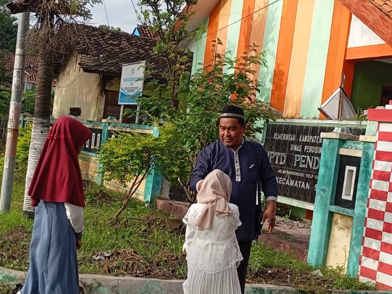 Kegiatan Pembiasaan tiap hari untuk menyambut murid datang ke sekolah.